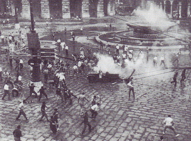 Il luglio 1960 in Italia fu caratterizzato da un’intensa mobilitazione popolare antifascista che causò la caduta del governo del democristiamo Tambroni che nacque grazie al determinante appoggio esterno del partito neofascista, il Movimento Sociale Italiano. Il MSI decise, poi, di convocare il suo congresso nazionale a Genova per il 2-4 luglio, una provocazione contro la città Medaglia d’Oro della Resistenza. Genova si ribellò e fu teatro di pesanti scontri, dei quali, protagonista fu una nuova generazione di giovani, i “ragazzi con le magliette a strisce”. Ci furono manifestazioni in tutta Italia contro il governo che furono pesantemente represse. A Reggio Emilia, durante una manifestazione, polizia e carabinieri spararono ad altezza d’uomo e vennero uccisi cinque operai. Gli scontri del luglio 1960 causarono un totale di 11 morti e centinaia di feriti. Poi, il governo Tambroni si dimise.